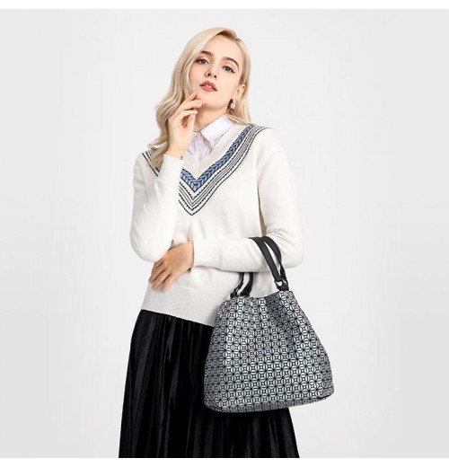 This bag is a great pick! Thegeometrical designgives this simplehandbagextra oomph. The large bag has plenty of pockets to keep you organized and comes in a silver color thatgoes with everything.